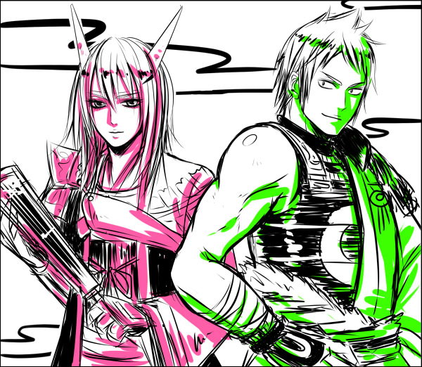 スペース一緒にまわって下さったちびさんとしんごーさんにはスケブ描かされる刑に処せられました。なんでなん…^^添付はその残骸。着てるのは何かのバンドさんの衣装らしいです。でも描かせてもらえて嬉しい^^